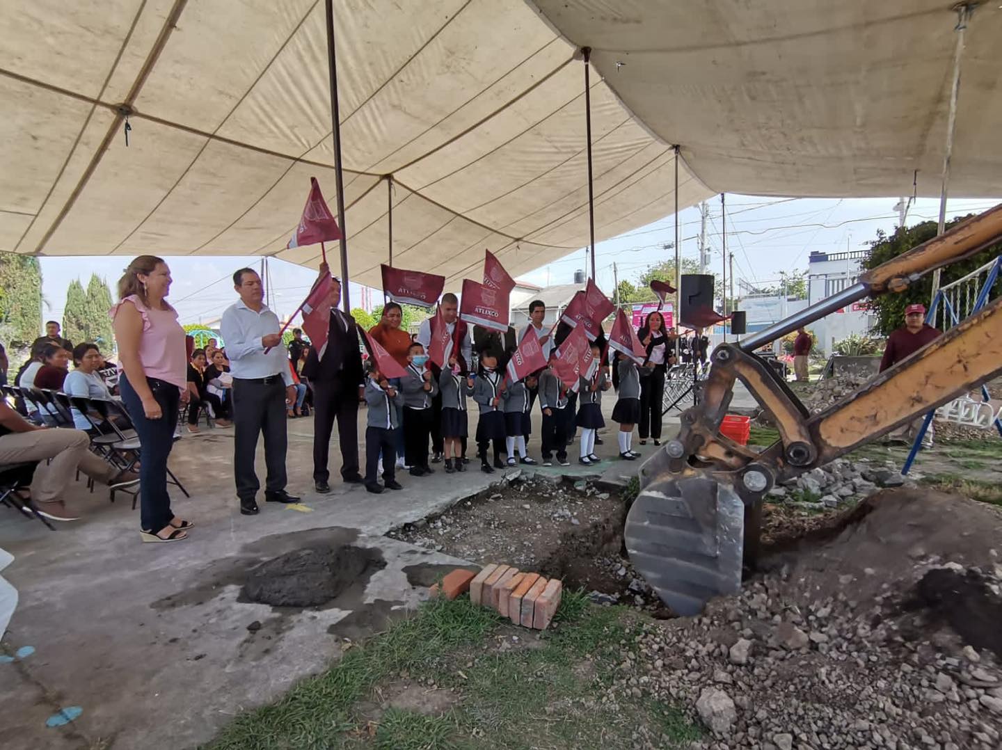 Atlixco, Pue.- Autoridades municipales del Ayuntamiento de Atlixco que preside, Ariadna Ayala dio el banderazo para iniciar la construcción de un techado, donde muy pronto más de 100 niñas, niños y docentes del Jardín de Niños Héctor Azar de San Félix Hidalgo podrán realizar sus actividades sin las inclemencias del tiempo, transformando así este espacio educativo en un entorno de calidad.