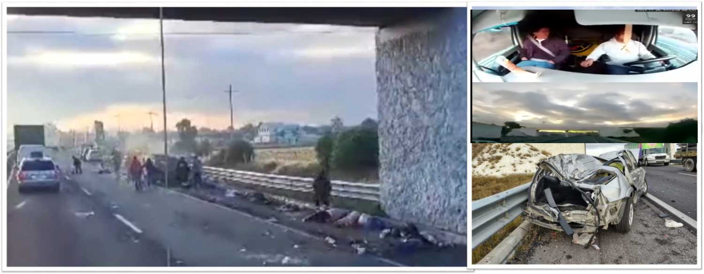 En el video difundido en redes sociales se observa que el tráiler circula sobre el carril derecho con dirección a Veracruz y una camioneta conducida a exceso de velocidad sobre el carril izquierdo, repentinamente se cruzó hacia el carril derecho.