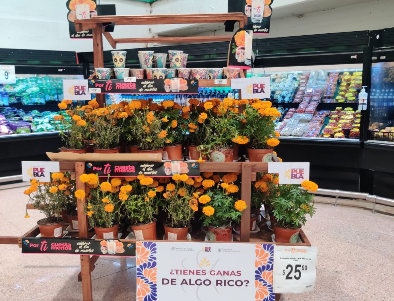 Quecholac, Pue.- Con la finalidad de impulsar la comercialización de flor de cempasúchil, la Secretaría de Desarrollo Rural (SDR), gestionó la compra de 32 mil 500 plantas por parte de la cadena Chedraui que fueron distribuidas en las sucursales de Puebla, Tlaxcala y Veracruz.