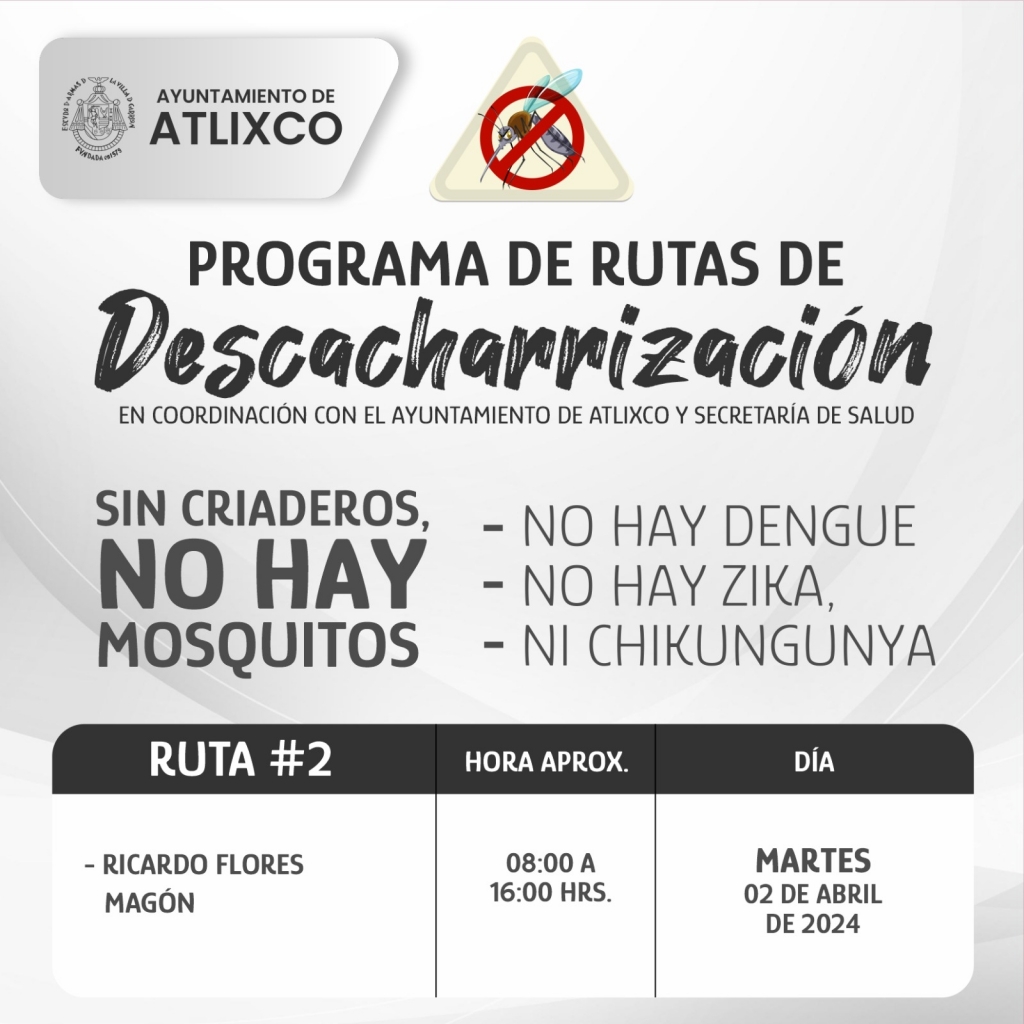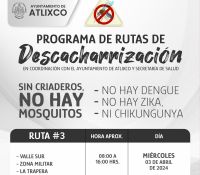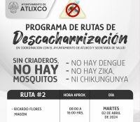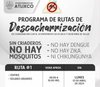 Mediante redes sociales del Ayuntamiento de Atlixco, se estarán compartiendo de manera semanal las rutas que seguirá el camión recolector de cacharros, mismo que estará recibiendo latas, botes, llantas, cubetas, envases o recipientes; asimismo, personal de vectores coadyuvará con trabajos de termonebulización, control larvario, entre otros.