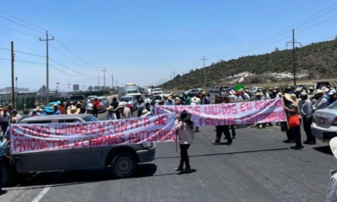 La protesta fue de un grupo de ejidatarios en contra del uso de avionetas y cañones antigranizo.