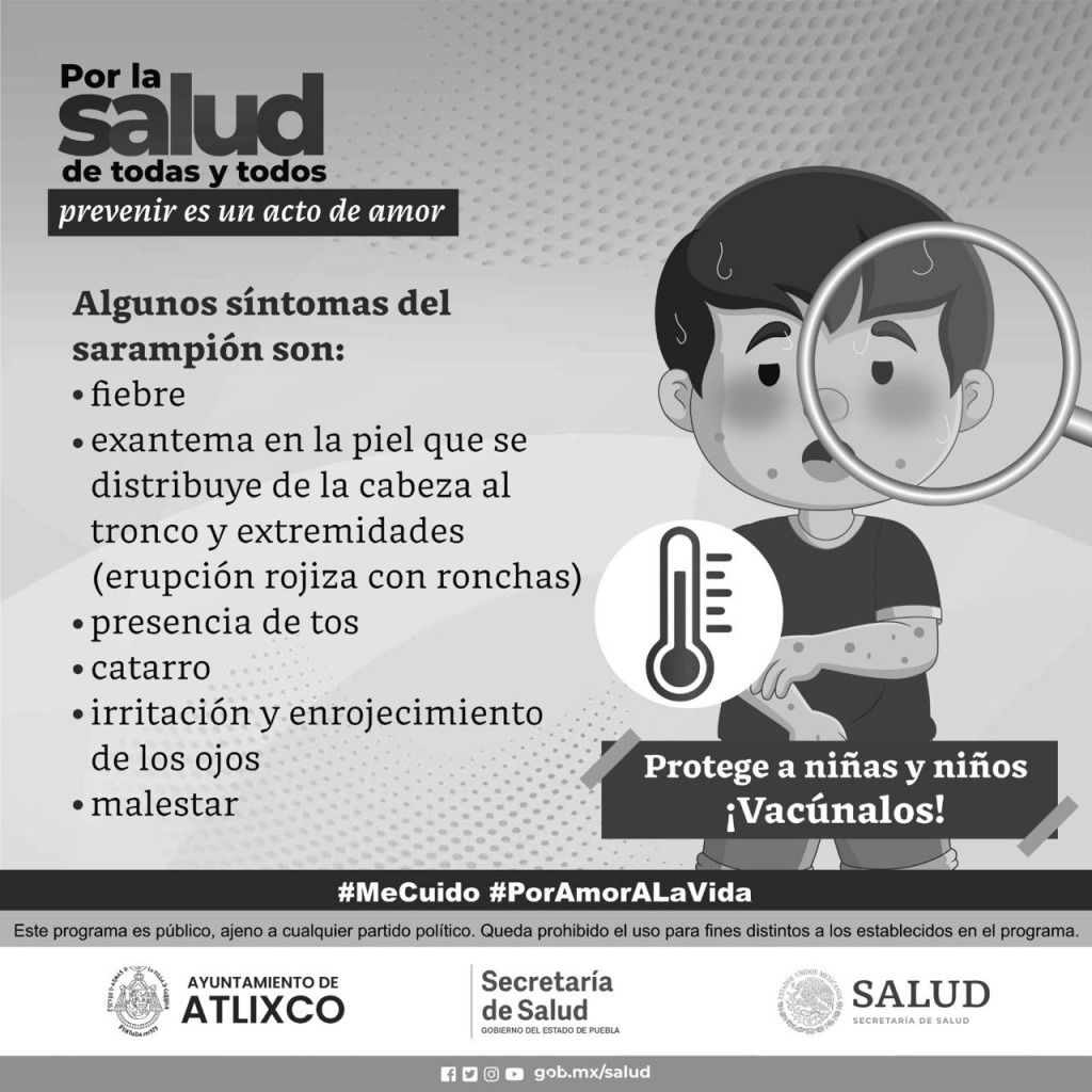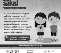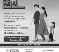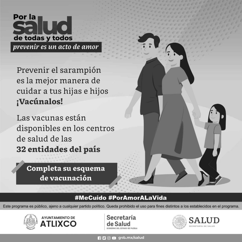 La Secretaría de Salud del Estado de Puebla, a través de los Centros de Salud y con apoyo del Ayuntamiento de Atlixco, lleva a cabo la campaña de recuperación de cobertura de vacunación con énfasis en sarampión y rubéola, hasta el 31 de mayo en todo el municipio.