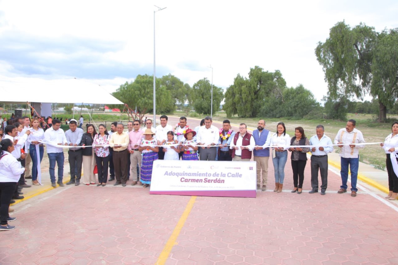 Cuapiaxtla de Madero, Pue. – Tras una gira de trabajo por el municipio de Cuapiaxtla de Madero, el mandatario estatal Sergio Salomón fue partícipe de la inauguración del adoquinamiento de las calles Carmen Serdán y Las Bugambilias en este municipio, con una inversión de más de 9.9 millones de pesos.
