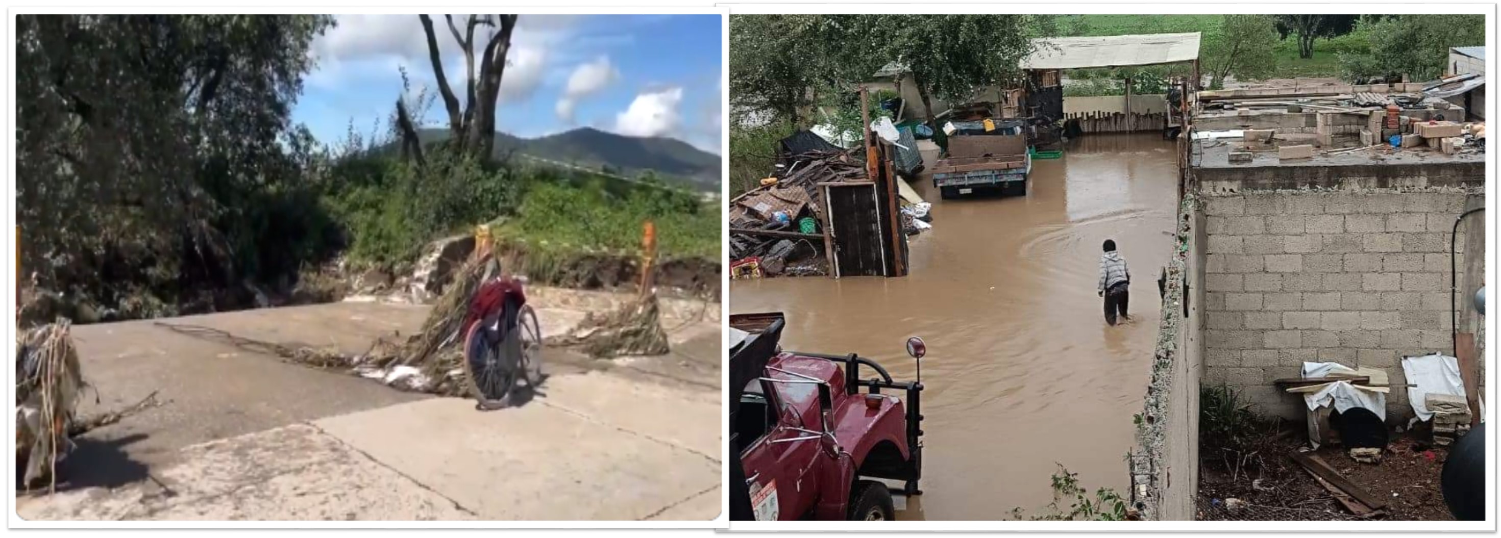 Además de que algunas casas fueran inundadas la corriente de agua provocó la caída del puente peatonal que construyeron los lugareños hace más de 20 años.