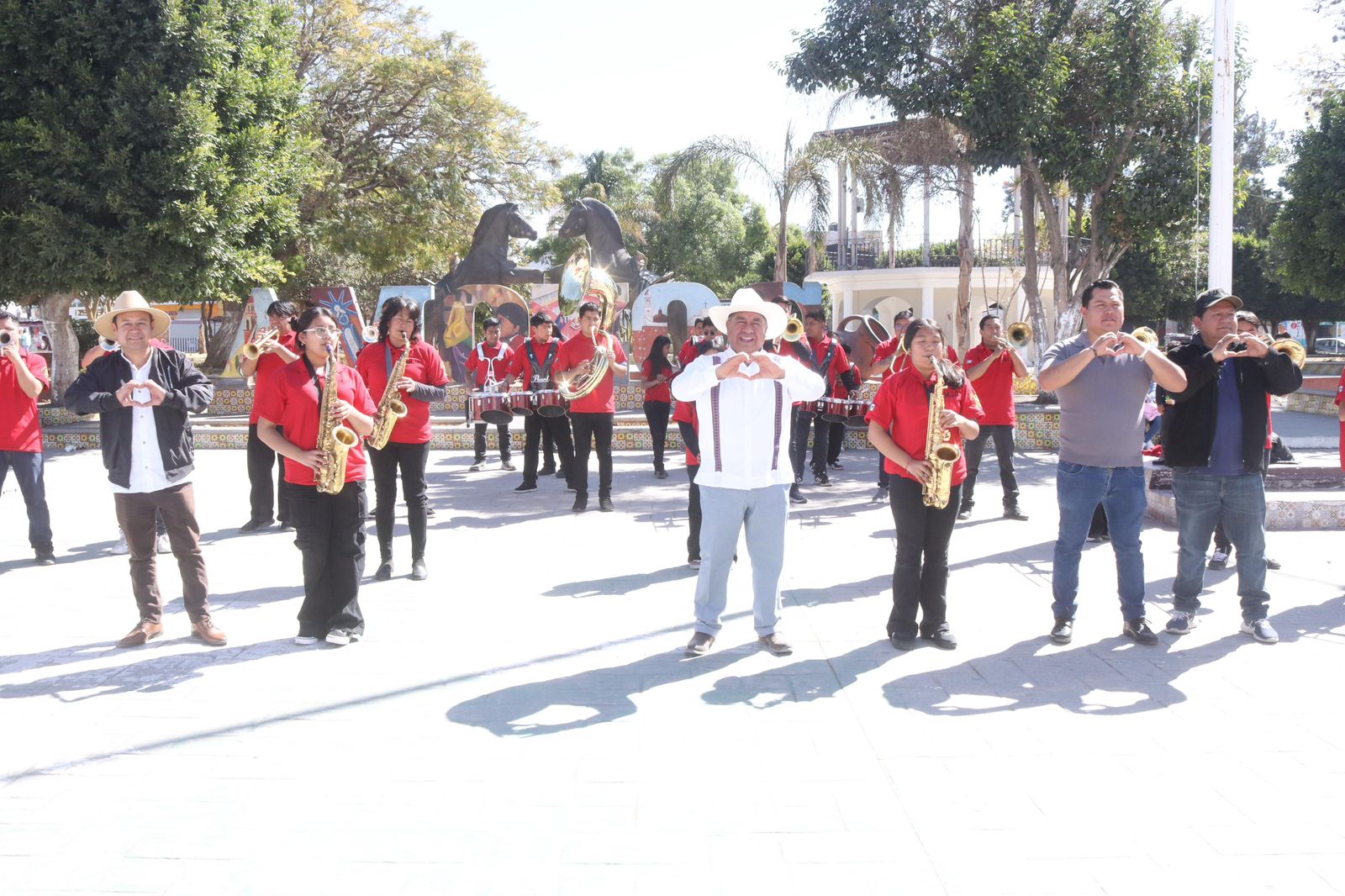 Amozoc.- Este domingo en la explanada del zócalo municipal el Presidente Municipal de Amozoc Severiano de la Rosa Romero, acompañado de regidores, llevó a cabo la entrega de uniformes oficiales a la Banda de Marcha Juventud Guadalupana de Amozoc, en un acto de reconocimiento a su dedicación, disciplina y compromiso con la cultura musical de nuestro municipio.