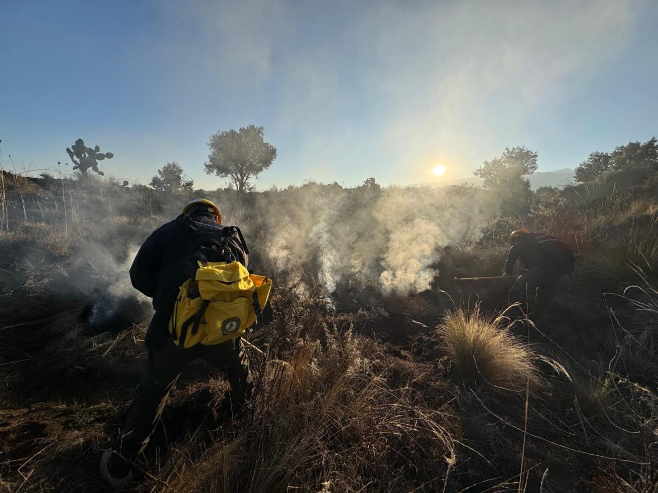 Desde las primeras horas de este día, el personal inició labores de combate y contención del fuego. Las acciones se desarrollaron de manera coordinada bajo el Sistema de Comando de Incidentes, en conjunto con la Brigada Rojo 4 de la Comisión Nacional Forestal (CONAFOR) y Protección Civil Municipal, lo que ha permitido avanzar en el control del siniestro.
