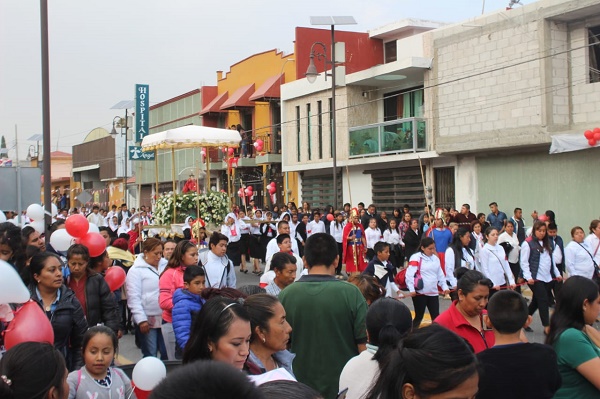 También fue recibido con música y cantos religiosos, además las principales calles de Tepeaca fueron decoradas con banderas, globos y alfombras de aserrín de color rojo y blanco, color litúrgico a Semana Santa.