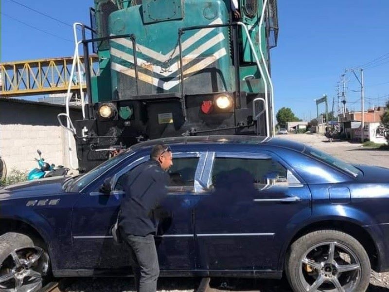 Acajete, Pue.- Debido a la imprudencia, falta de pericia y precaución, un vehículo color azul trató de ganarle el paso al tren que circulaba por la comunidad de San Jerónimo Ocotitlán, en el municipio de Acajete, pero al no lograrlo fue golpeado por el ferrocarril, donde afortunadamente el conductor resultó con lesiones menores.