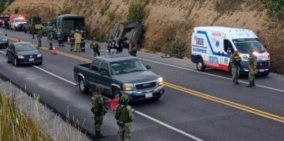 Amozoc, Pue.- Fuerte accidente se registró sobre la autopista Amozoc-Perote, a la altura del kilómetro 11; nueve elementos de las fuerzas armadas resultaron heridos luego de que la unidad en la que viajaban volcara.