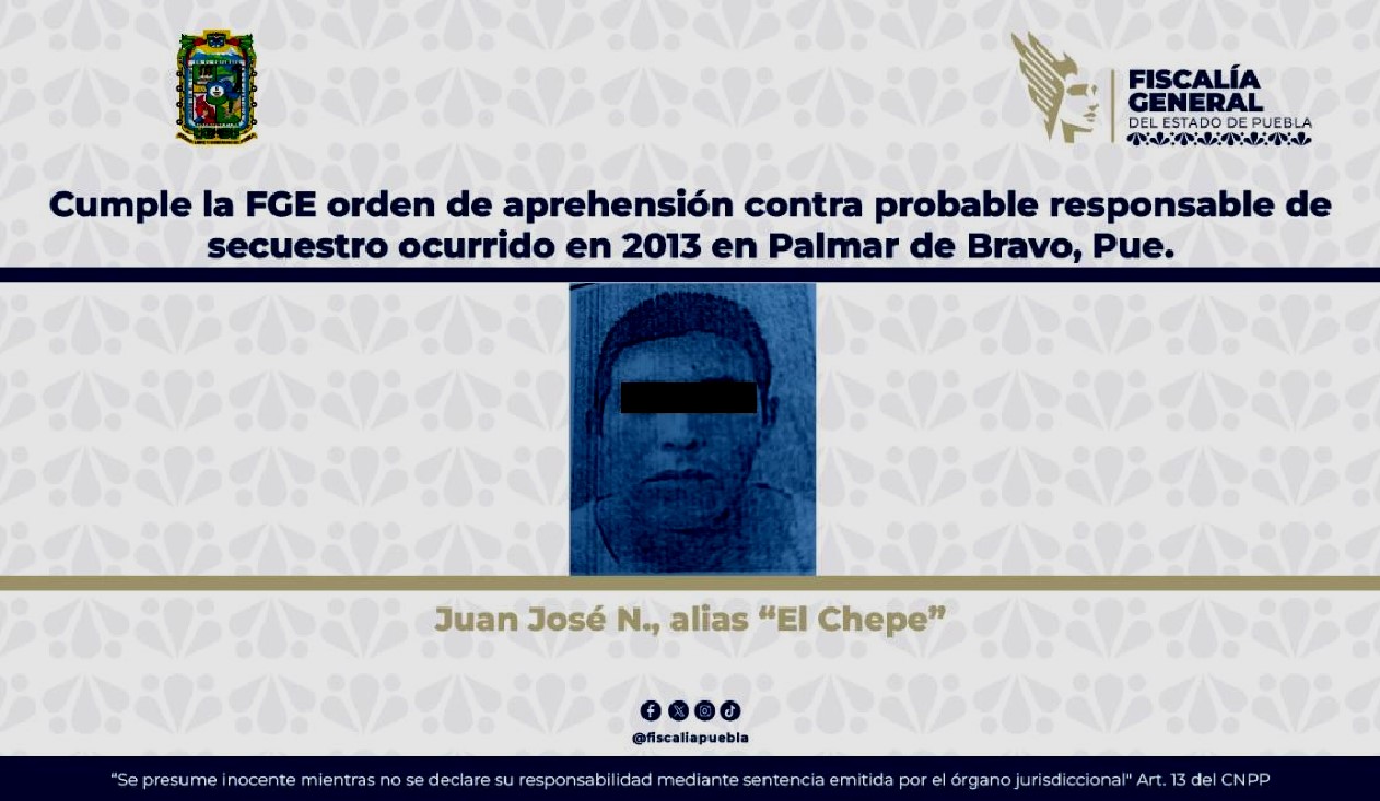 Foto: Cortesía FGE de Puebla cumple orden de aprehensión contra probable responsable de secuestro en Palmar de Bravo
