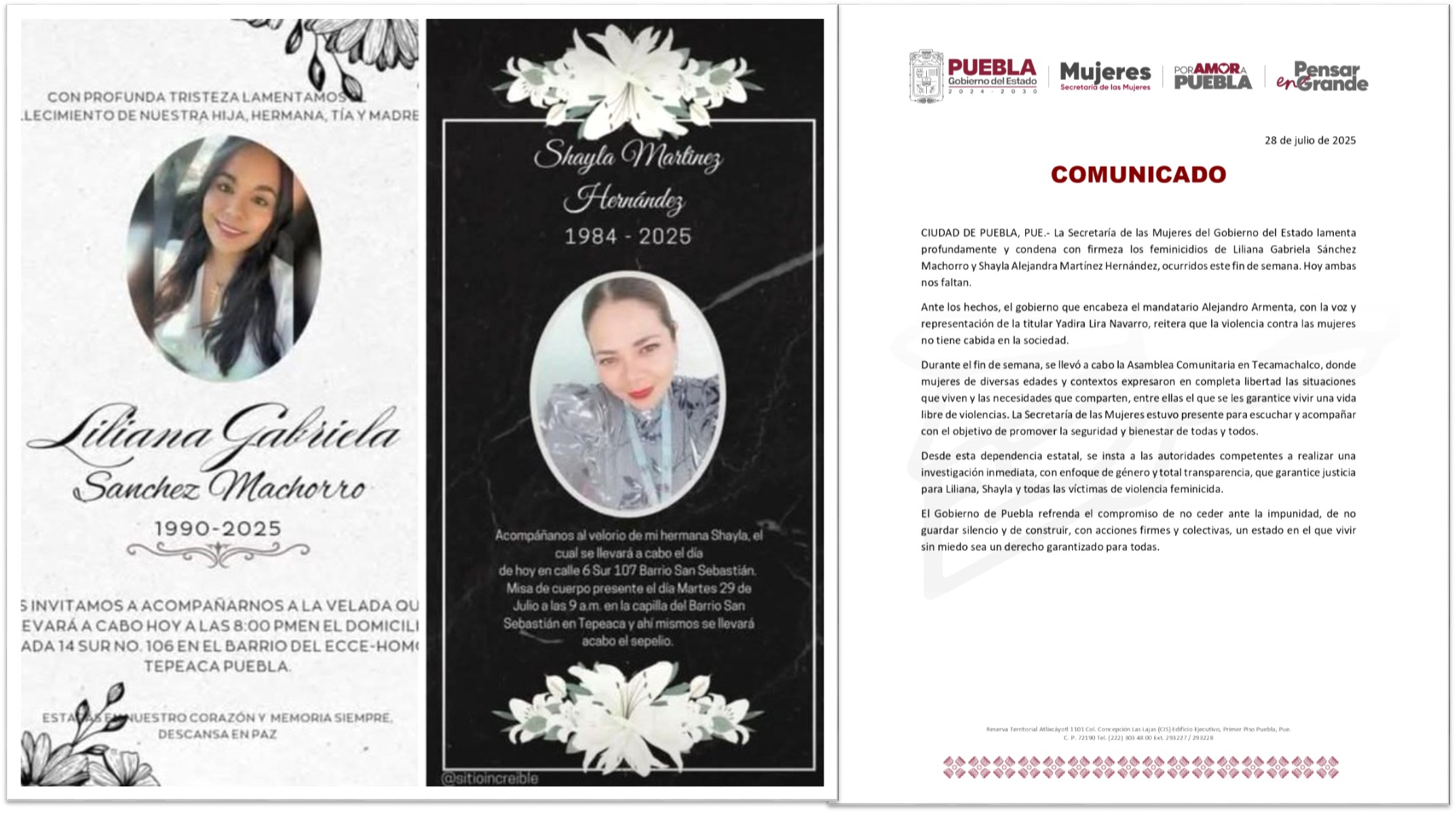Foto: Cortesía La Secretaría de las Mujeres condena los feminicidios de Liliana y Shayla, originarias de Tepeaca