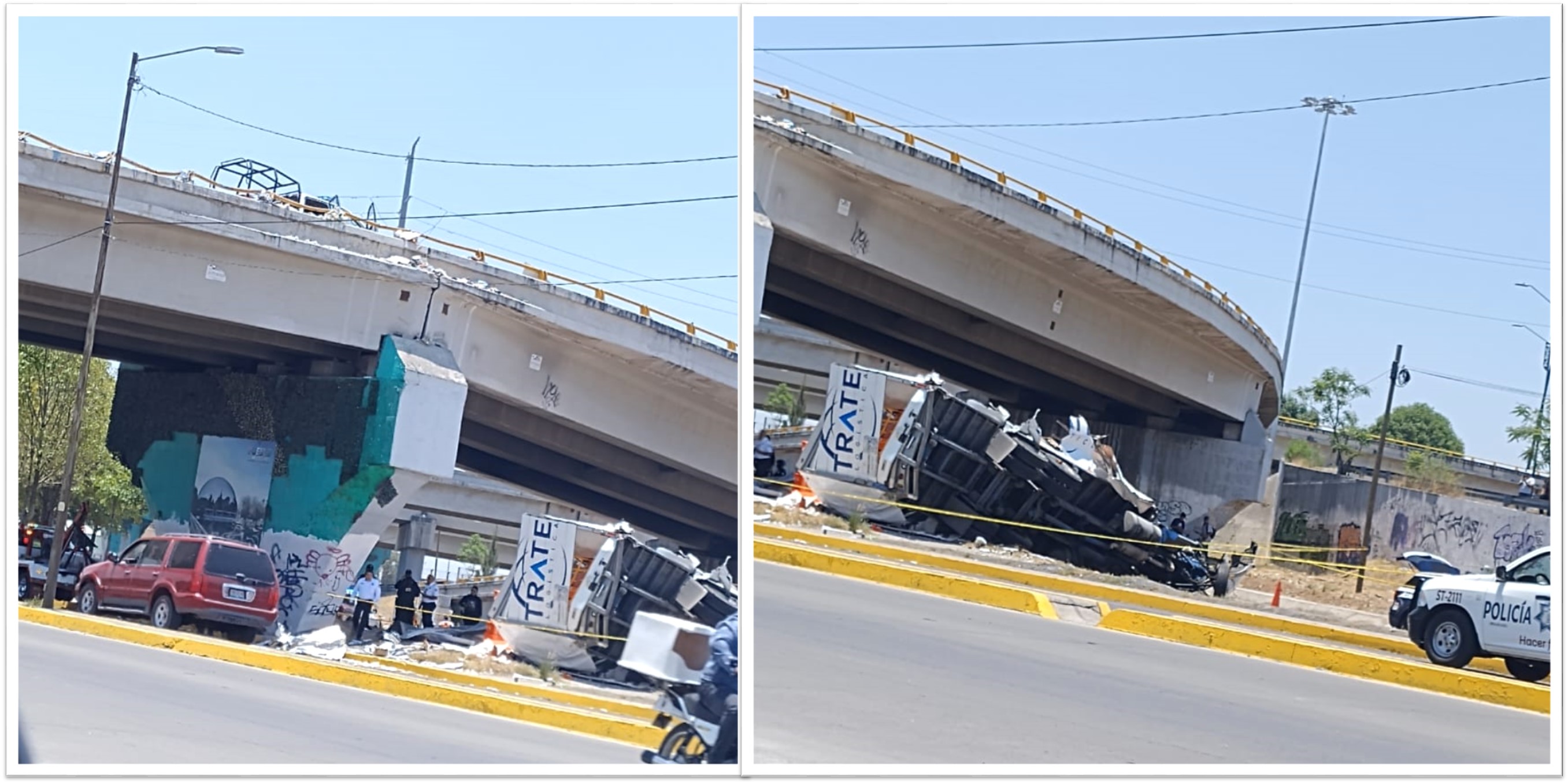 Foto: Cortesía Cae tráiler desde el puente del Periférico Ecológico sobre la carretera federal a Tehuacán, con sentido a Amozoc
