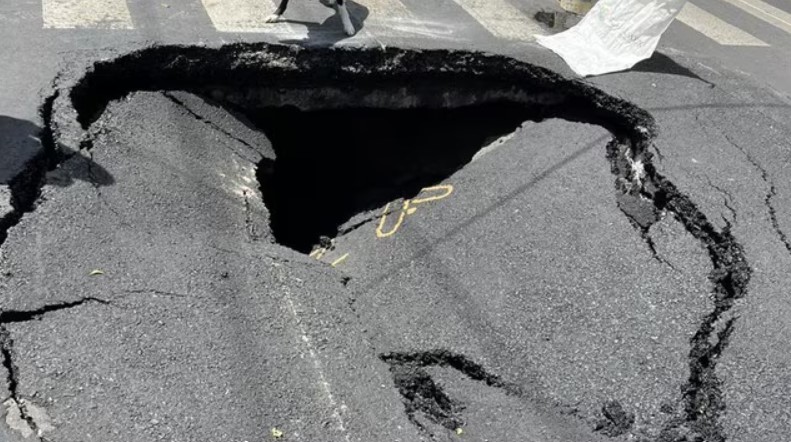 Ciudad de México.- Un socavón de aproximadamente tres metros de profundidad se formó inesperadamente en calles de la colonia Roma de la alcaldía Cuauhtémoc.