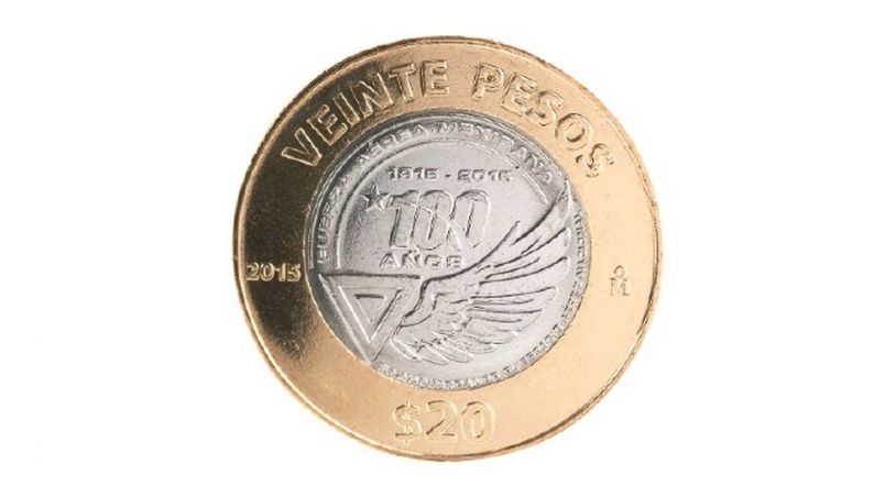 México.- El Banco de México lanzó en 2015 una moneda conmemorativa de los 100 años de la Fuerza Aérea Mexicana, la pieza tenía un valor de 20 pesos y fue puesta en circulación con el objetivo de reconocer a la institución que desde 1915 trabaja para proteger el país, entre muchas de las otras actividades que lleva a cabo.