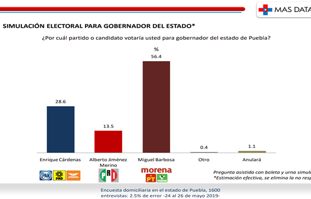 Miguel Barbosa 28 puntos arriba de Enrique Cárdenas: encuesta MAS DATA