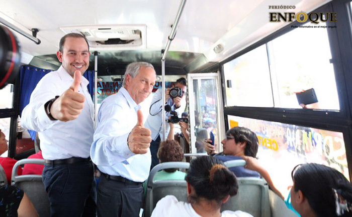 Marko Cortés y Enrique Cárdenas realizan campaña en el trasporte público (Fotos)
