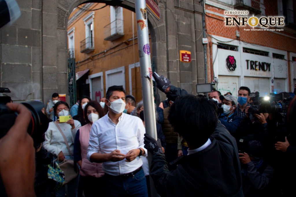 Puebla, Pue.- Como parte de su estrategia “Ciudad de 10”, el presidente municipal de Puebla, Eduardo Rivera dio el banderazo al programa de eliminación de limpieza y eliminación de graffitis en el primer cuadro de la ciudad.