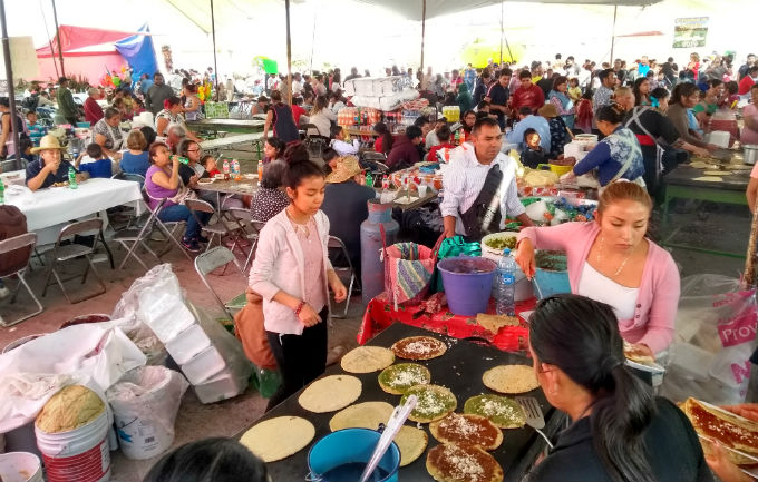 El miércoles, más de 60 expertas en gastronomía se encargarán de preparar las deliciosas memelas, utilizando una impresionante cantidad de ingredientes: más de 8 toneladas de maíz, 5 mil litros de salsa roja, 5 mil litros de salsa verde, 2 toneladas de queso, 1 tonelada de cebolla, 2 toneladas de manteca, 56 tanques de gas, 150 mil platos de unicel y 3 toneladas de frijol.