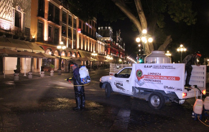 Puebla, Pue.- Este miércoles 25 de marzo, el Ayuntamiento de Puebla a través del Organismo de Limpia inició con acciones preventivas ante el brote del Covid-19, estrategia que consiste en el lavado de varios puntos de la ciudad.